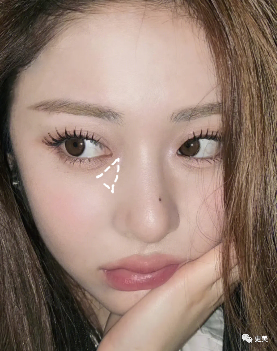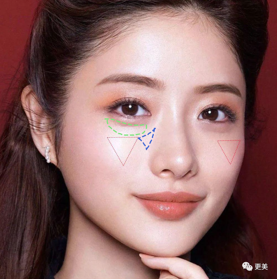 如果填得太,从苹果肌到卧蚕的自然衔接感就会消失,苹果肌的高光点会模糊、内收,即便脸不大,也有被“摊开”的效果。