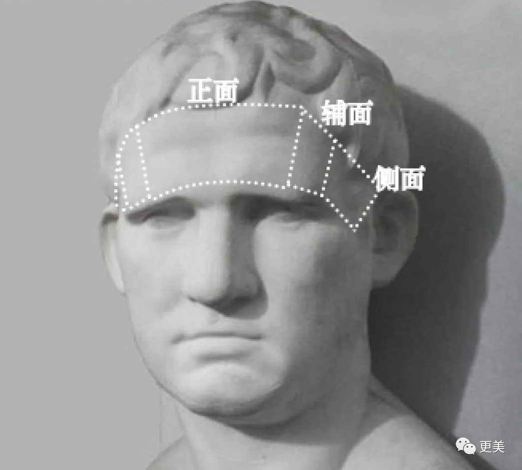 人的整个额面和脸面一样都有弧度,额面也有自己的主面、辅面、和侧面,是一个多面的立方体,前颞区就位于侧面+辅面。
