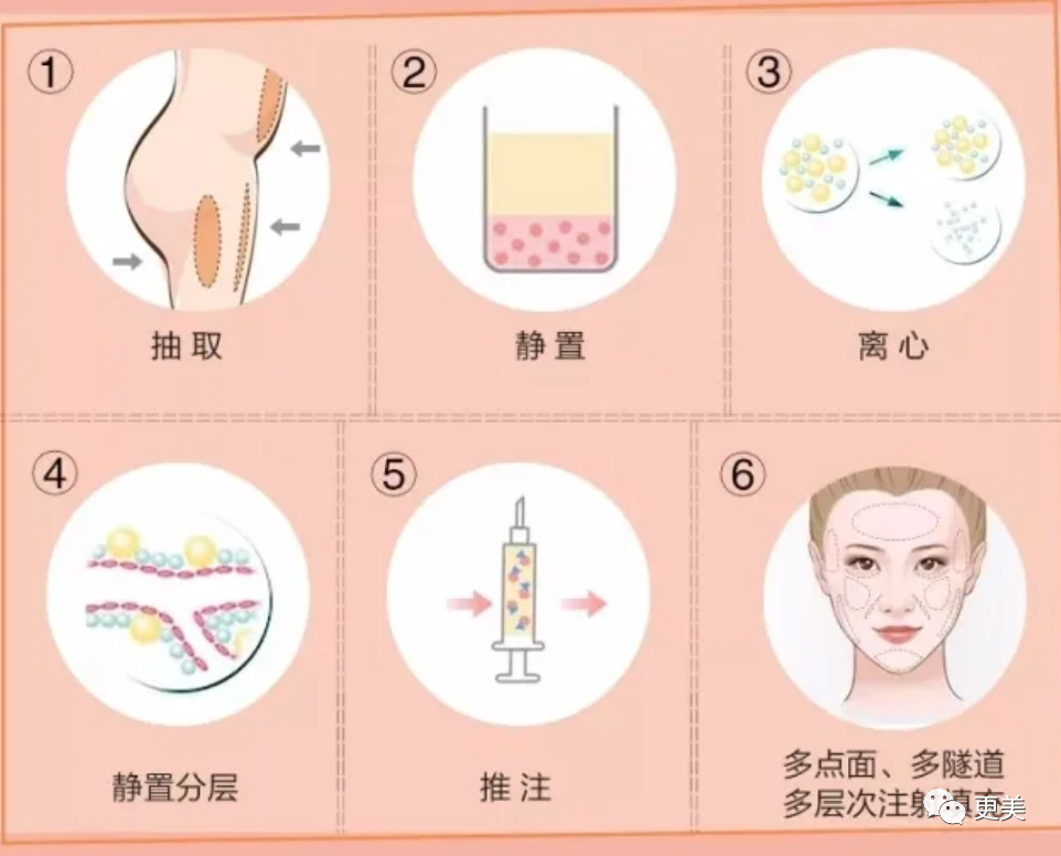 填充脂肪的来源是自体脂肪,从腹部、大腿、臀部等柔软脂肪富集的地方将脂肪抽取下来,经过静止、离心、分层等步骤最后注射进面部。