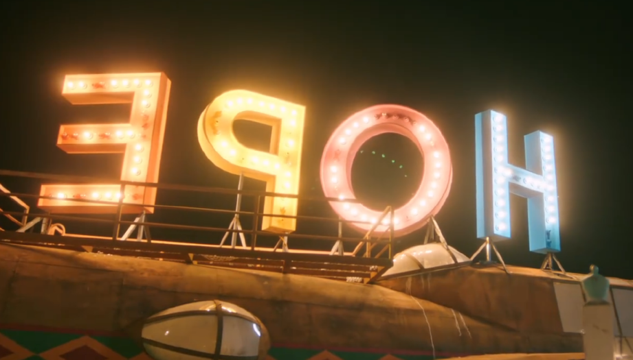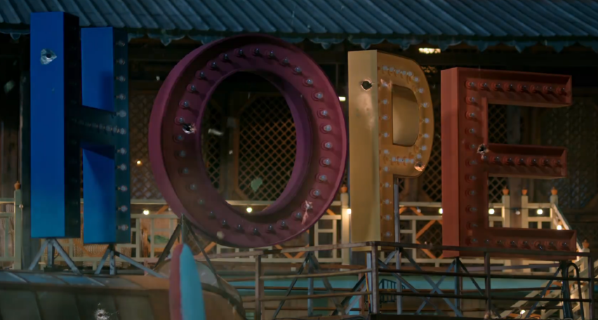 因为爱情,前一秒刚被叛军打烂的灯牌。