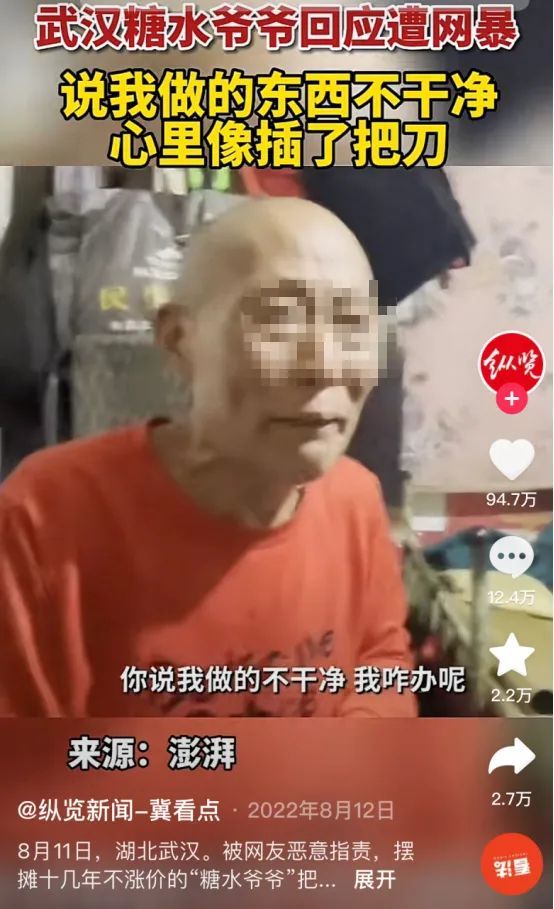 武汉的糖水爷爷,坚持了十几年卖2元一份的糖水,还可以免费续杯。