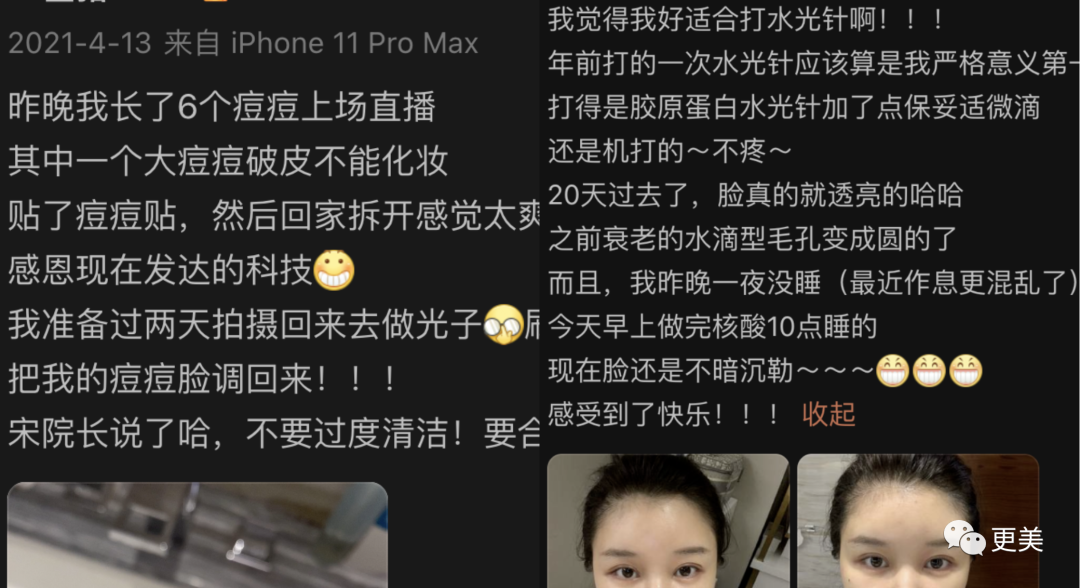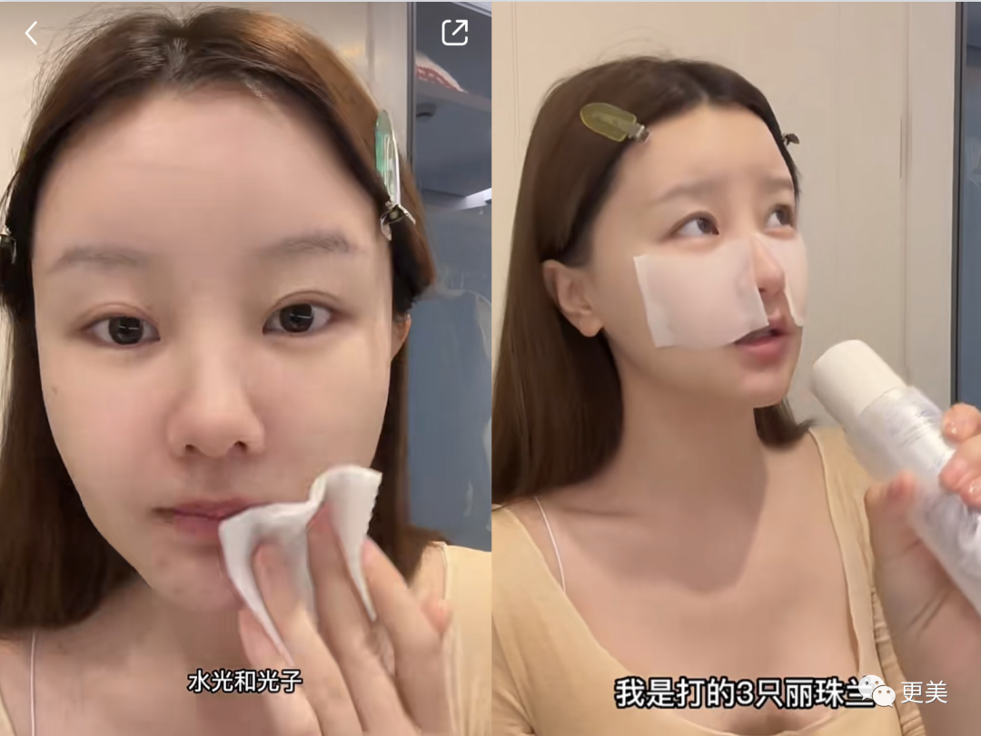 最后来到日常保养环节,滕雨佳是功效水光+光子嫩肤+刷酸的最大受益者。