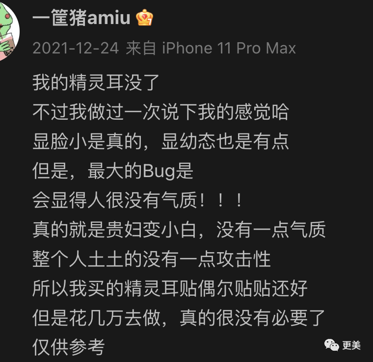如果用贵价大分子玻尿酸品牌,据说得20w才能换来一个精灵耳。