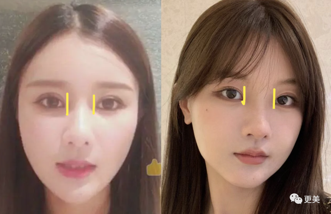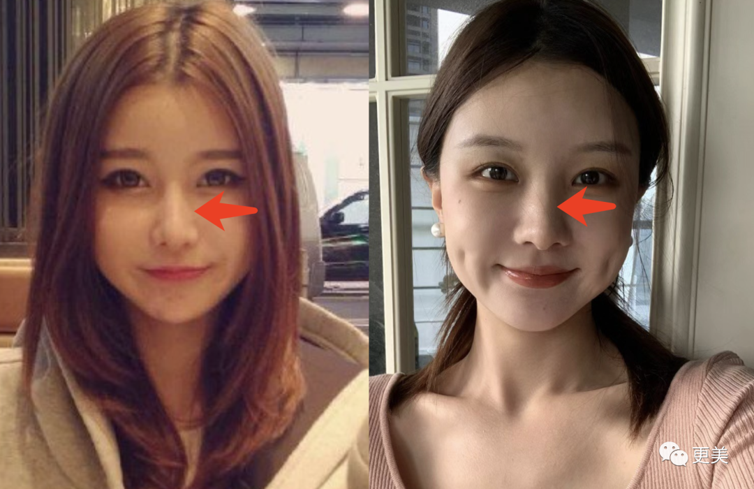 她这次的改变核心是鼻子整体缩小一号,山根降低后两眼间距会适当拉开,宽眼距会拉低年龄,减龄显小。