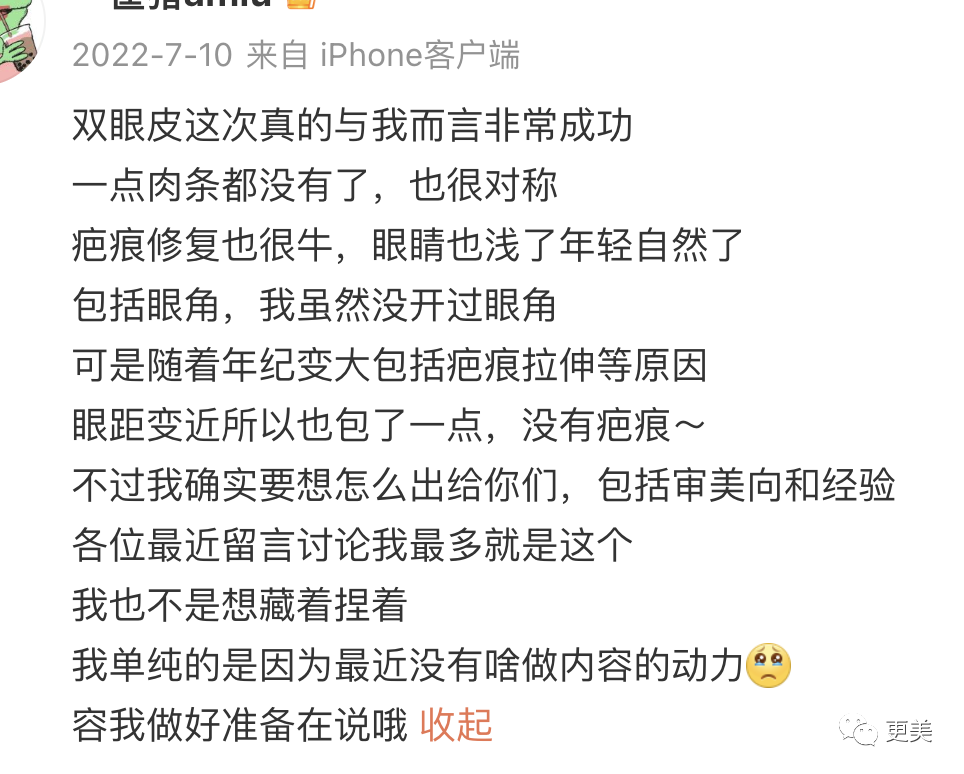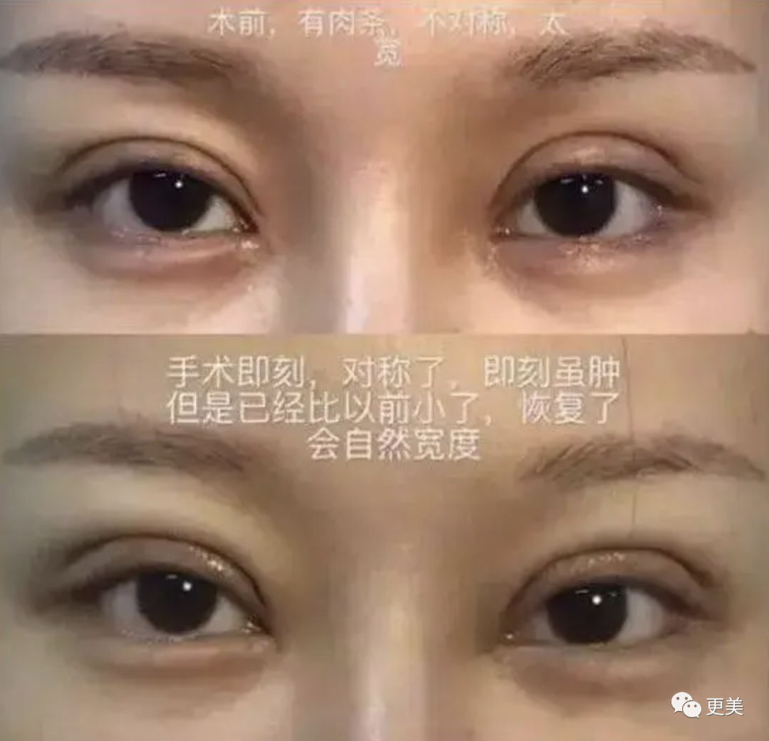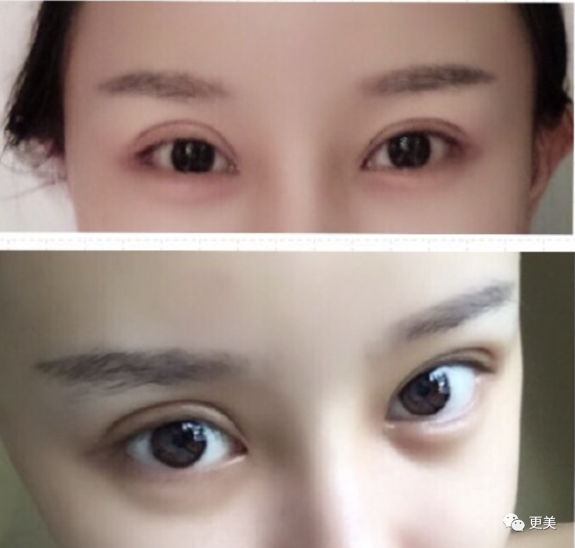 导致肉条重、不对称,眉眼间距过近,眉压眼看起来很凶,没开眼角是她觉得最庆幸的事。