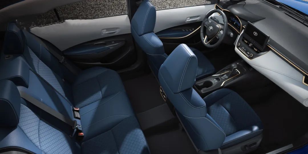 基于Toyota Space智能座舱打造,能明显感觉到亚洲狮的内饰质感要比卡罗拉有明显提升,藏蓝色的皮座椅很罕见,内嵌网格装饰,搭配白色的中控台,高级感扑面而来。不仅如此,前座舱还布有黄色真皮缝线贯穿,视角效果以及细腻程度都值得一个好评。