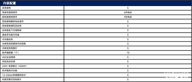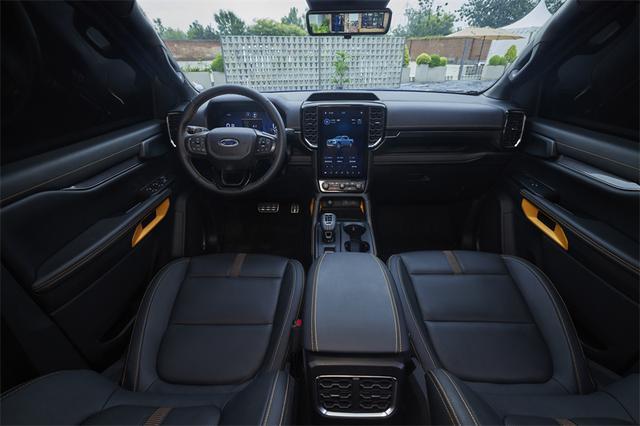 车内配置部分,福特Ranger 1st Edition全车采用皮质座椅、并且车内带有1st Edition专属镭射标识。配置方面,配备主驾驶座椅6方向电动调节、副驾驶座椅4方向电动调节、高清流媒体后视镜、ANC主动降噪、方向盘加热、10喇叭扬声器系统等。
