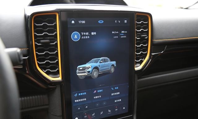 智能体验部分,福特Ranger 1st Edition人机交互系统由12.3英寸全液晶仪表和12.1英寸纵向中控屏幕组成。车机支持5G车联网、Wi-Fi热点、FOTA固件升级、GPS北斗双模导航、智能语音识别。同时,车辆还能够实现手机or可穿戴设备蓝牙钥匙功能、66W有线充电与40W手机无线充电、无人机伴飞等功能。