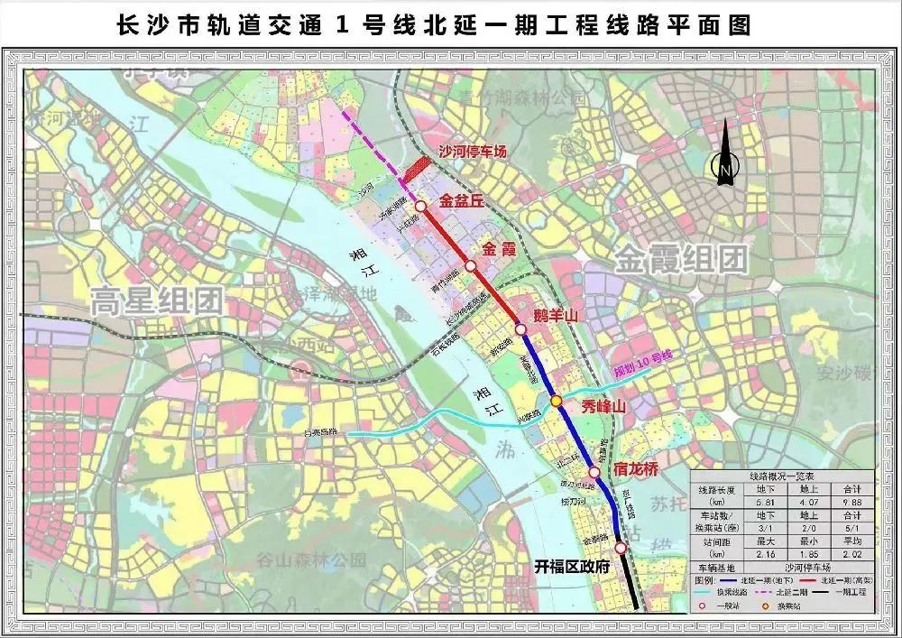 长沙市轨道交通1号线北延一期工程位于开福区金霞组团段。