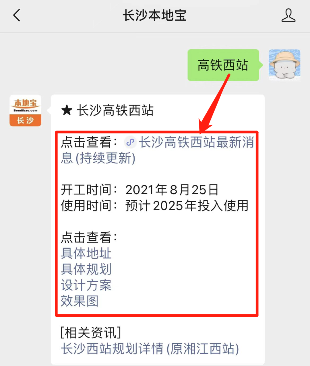 关注【长沙本地宝】微信公众号,聊天框回复【高铁西站】即可点击查看建设新进展、规划效果图等持续更新的相关消息。