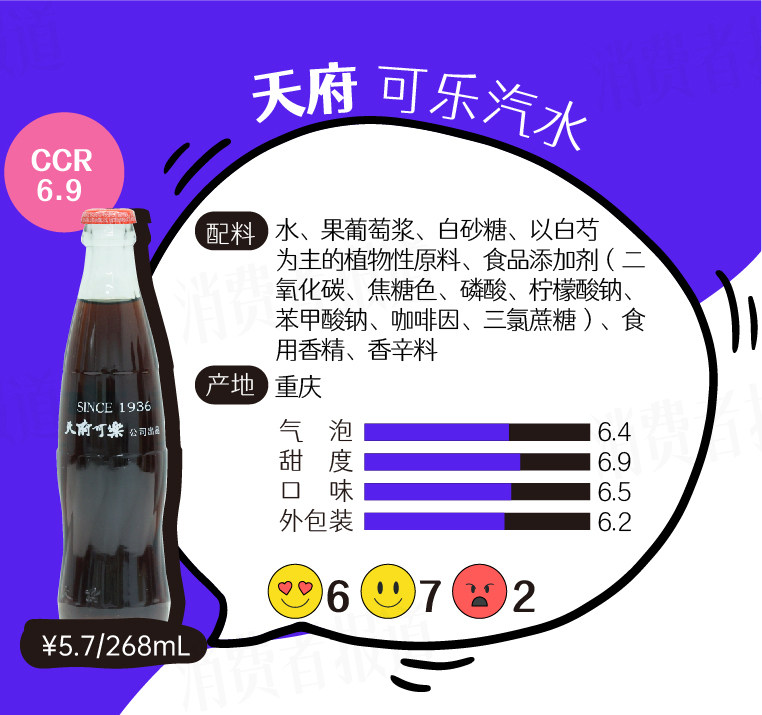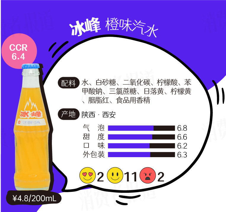 小8:气泡充足,有汽水该有的刺激感,但太甜了,也只有甜味,所以喝起来像“糖水+汽”。