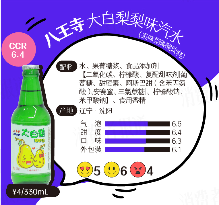 黑裙大侠:绿色瓶子很独特,梨子味的汽水很少喝,味道意外地不错,可以回购。