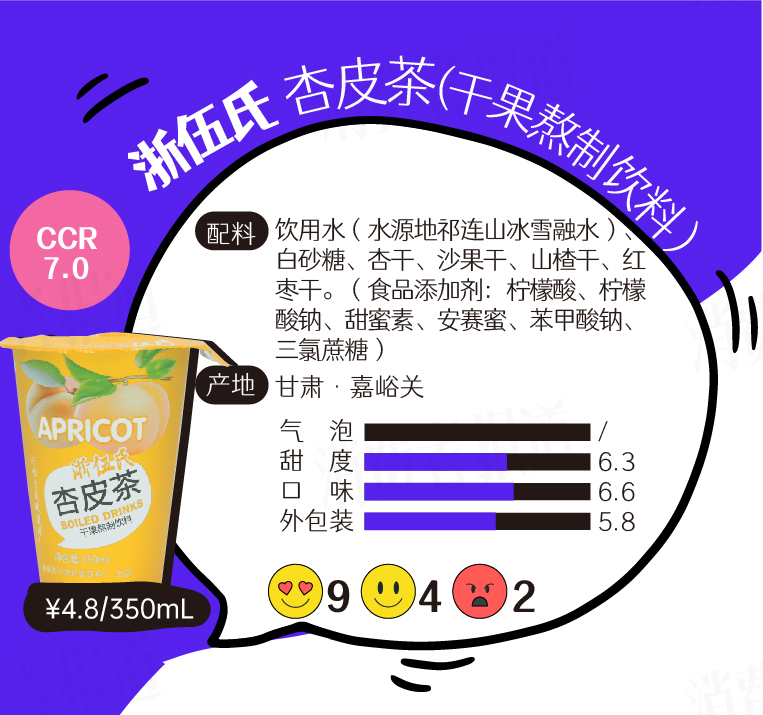 北极贝贝:偏甜,而且有点单一,但是酸味中和了一些甜味,味道有点像小清新版的酸梅汤。
