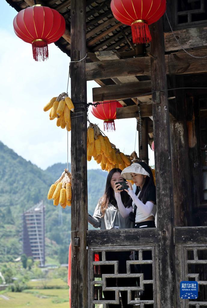 9月18日,游客在湖北省宣恩县彭家寨游玩。