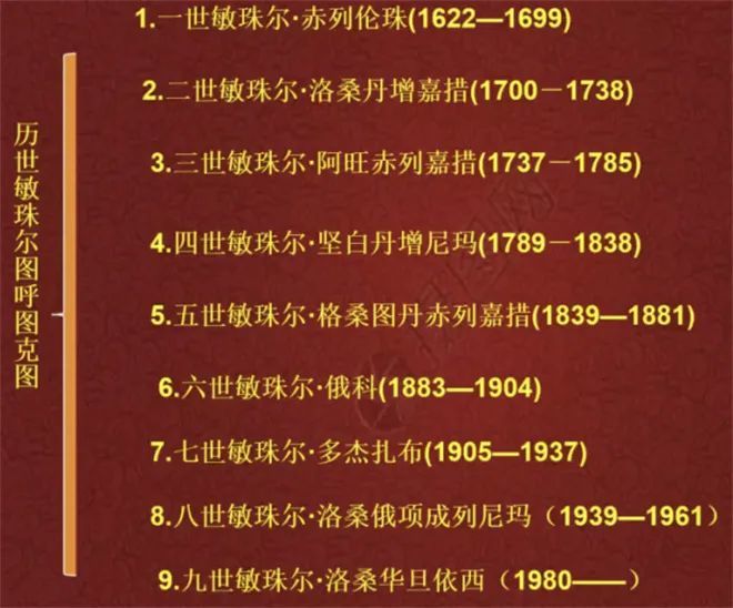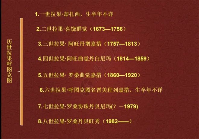 清代驻京八大呼图克图,其中,一位来自西藏,一位来自甘肃,一位来自内蒙古,其余五位均来自青海。
