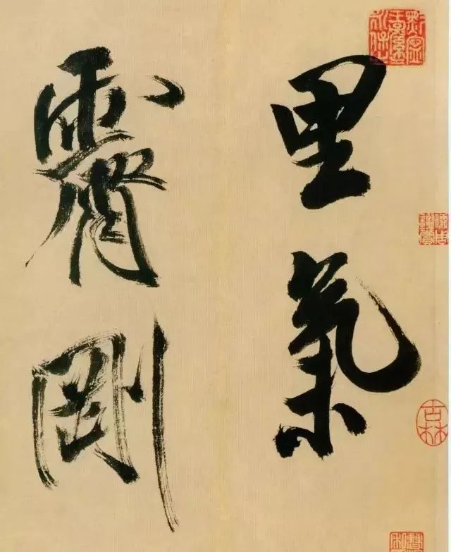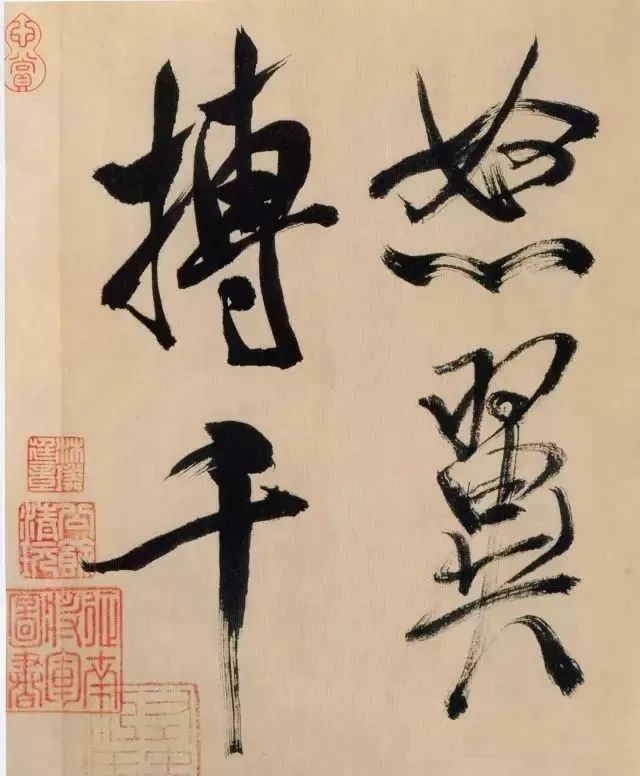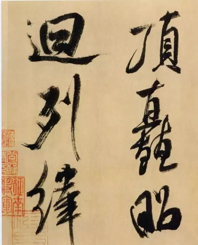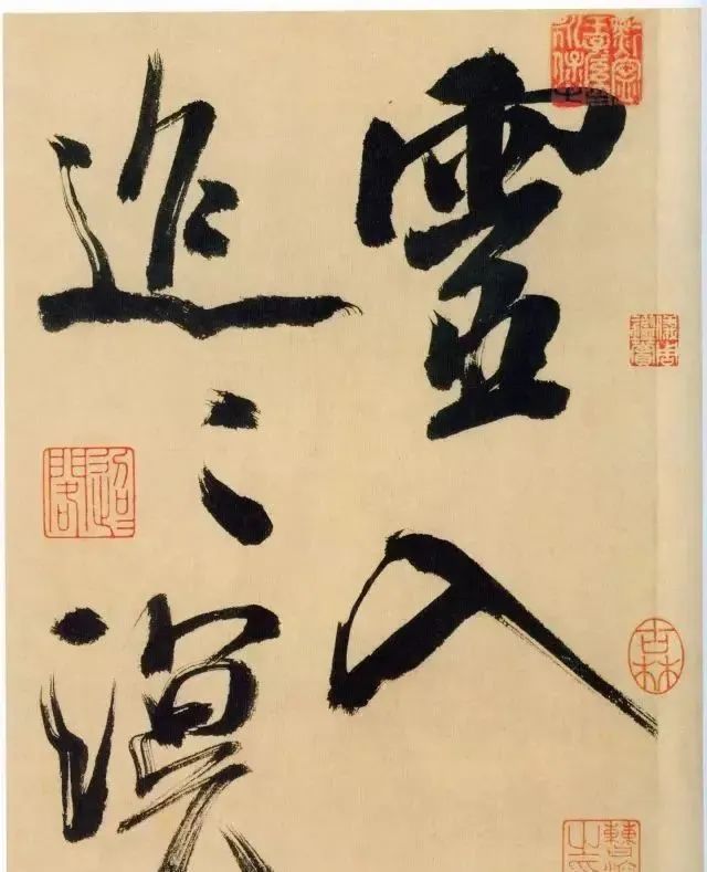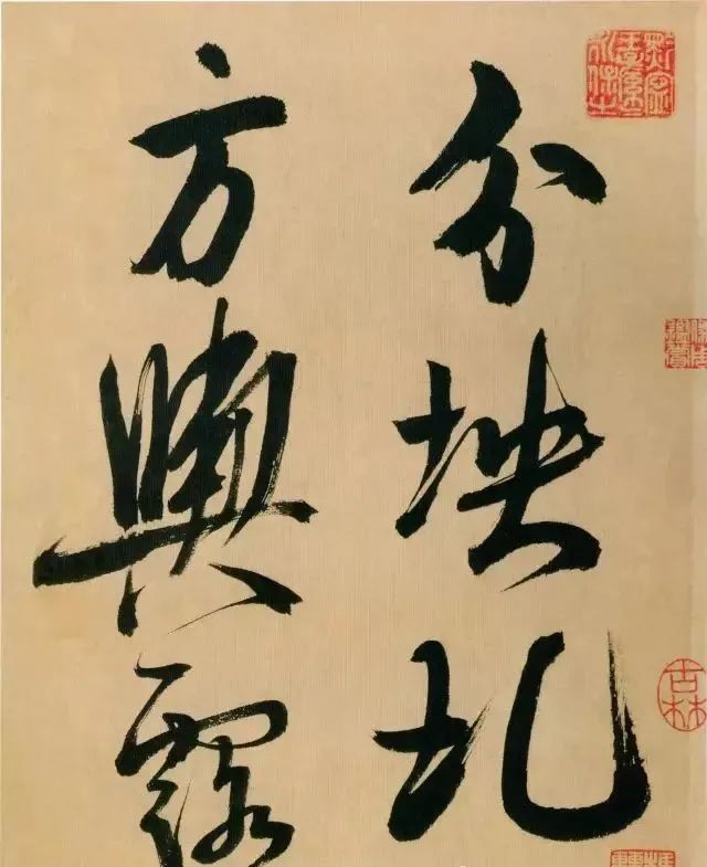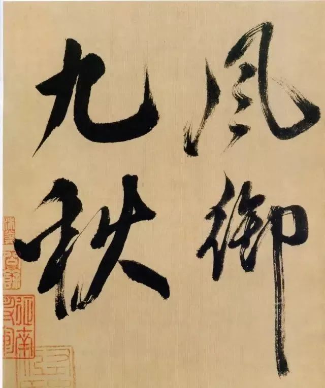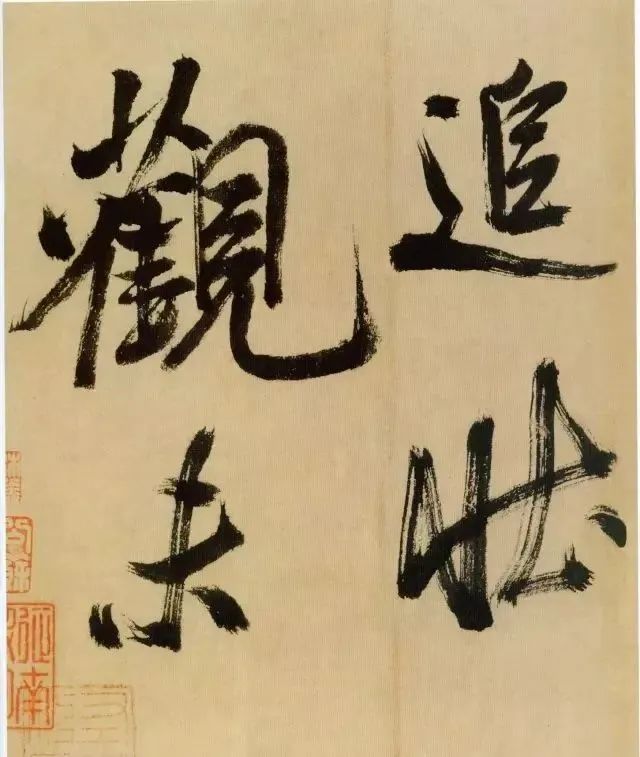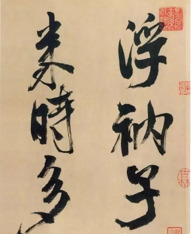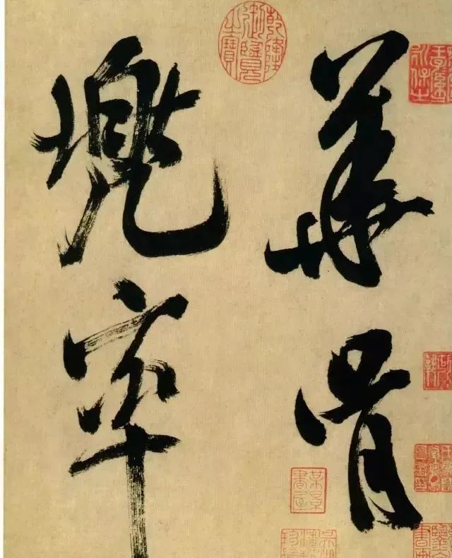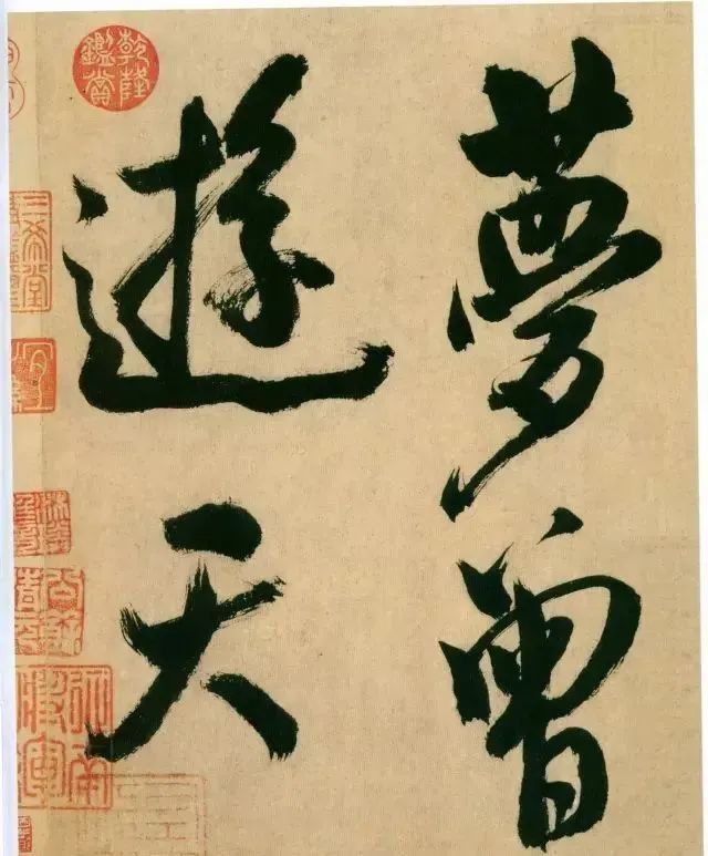 《多景楼诗册》是米芾晚期作品,用笔老辣、厚重,间架欹侧中见稳健,极为豪放,笔力雄伟。“刷字”的运笔方式在此册中表现得极为明显,许多笔画的起笔呈现散开的锋毫。一些竖笔、撇笔因运行急速而留出飞白。整幅作品气势豪迈,跌宕的笔画间蕴涵着巨大的张力。