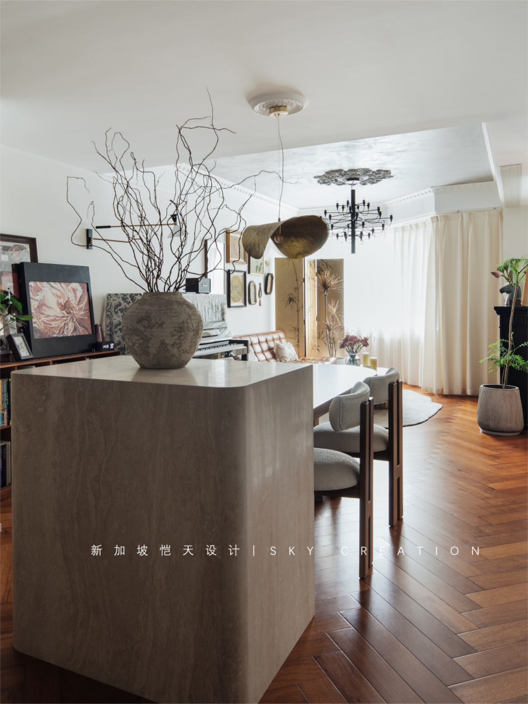 恺天新项目的业主来自北京,有着自己独特的喜好和品位,注重与空间的共鸣,喜欢中古、有腔调、但又不落俗套的设计。