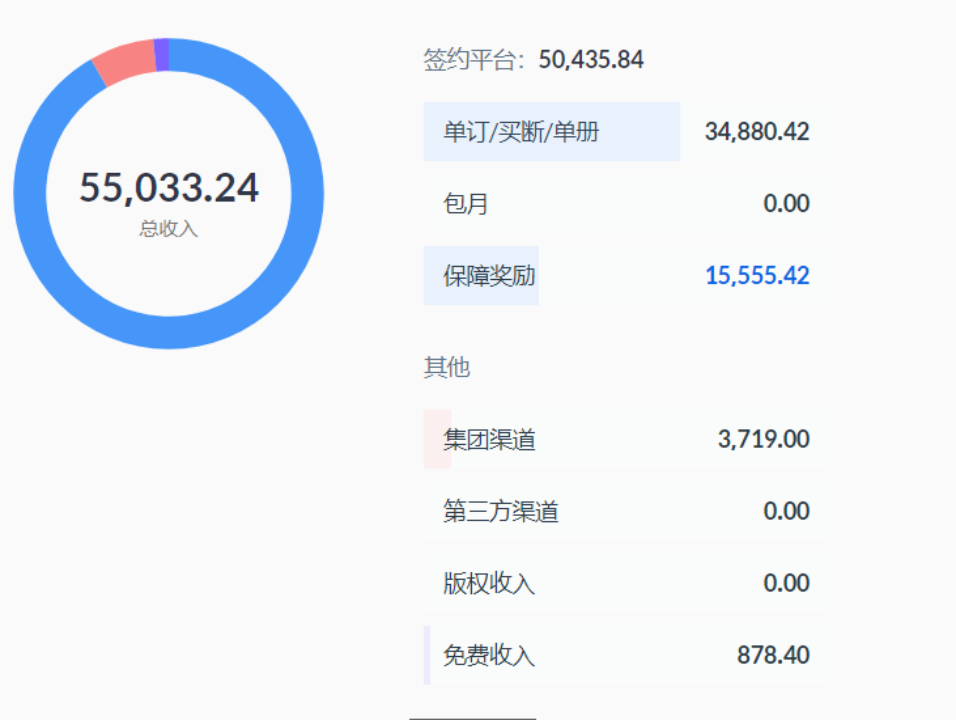 章明算是幸运的,他顺利进入频道内的第四轮推荐,收获了均订一千八的成绩。从今年1月上架收费,截止今年7月,总共收入了五万五千多的稿费。