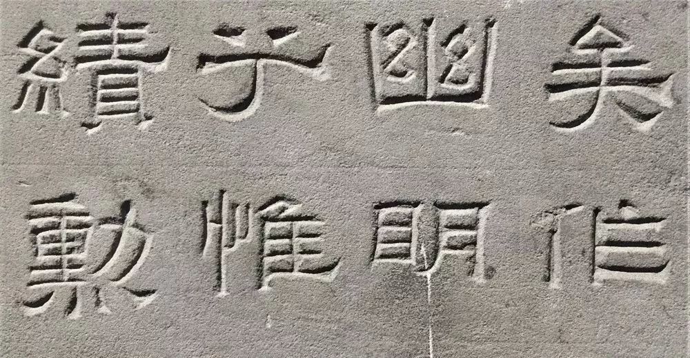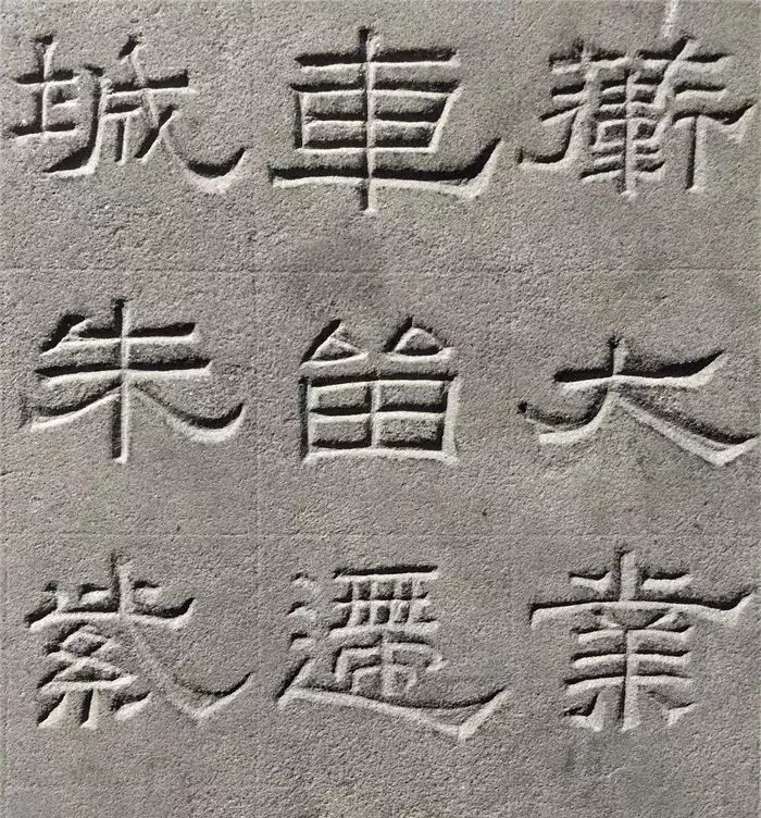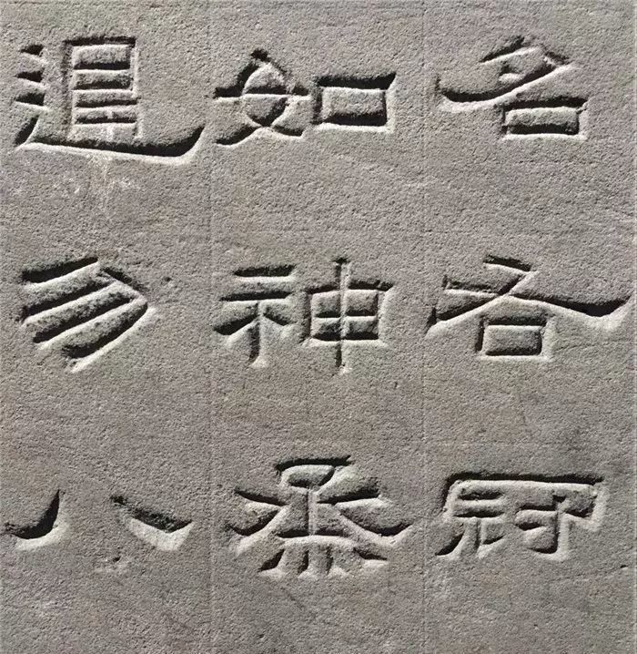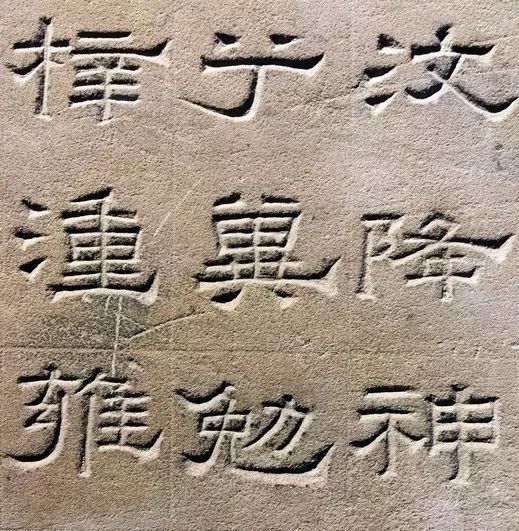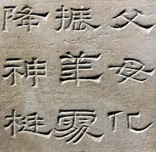纵观景云碑全篇,文字结体较为方整严谨,与多数东汉隶书字形的圆润舒展有别。部分文字的横、撇、捺、钩等笔画收尾处锋芒毕露,体现出接近魏晋隶书的特点。如“魂”、“追”等字,主横画意气沉雄,强调笔力,收尾处却以燕尾蓄势高挑,颇为夸张。