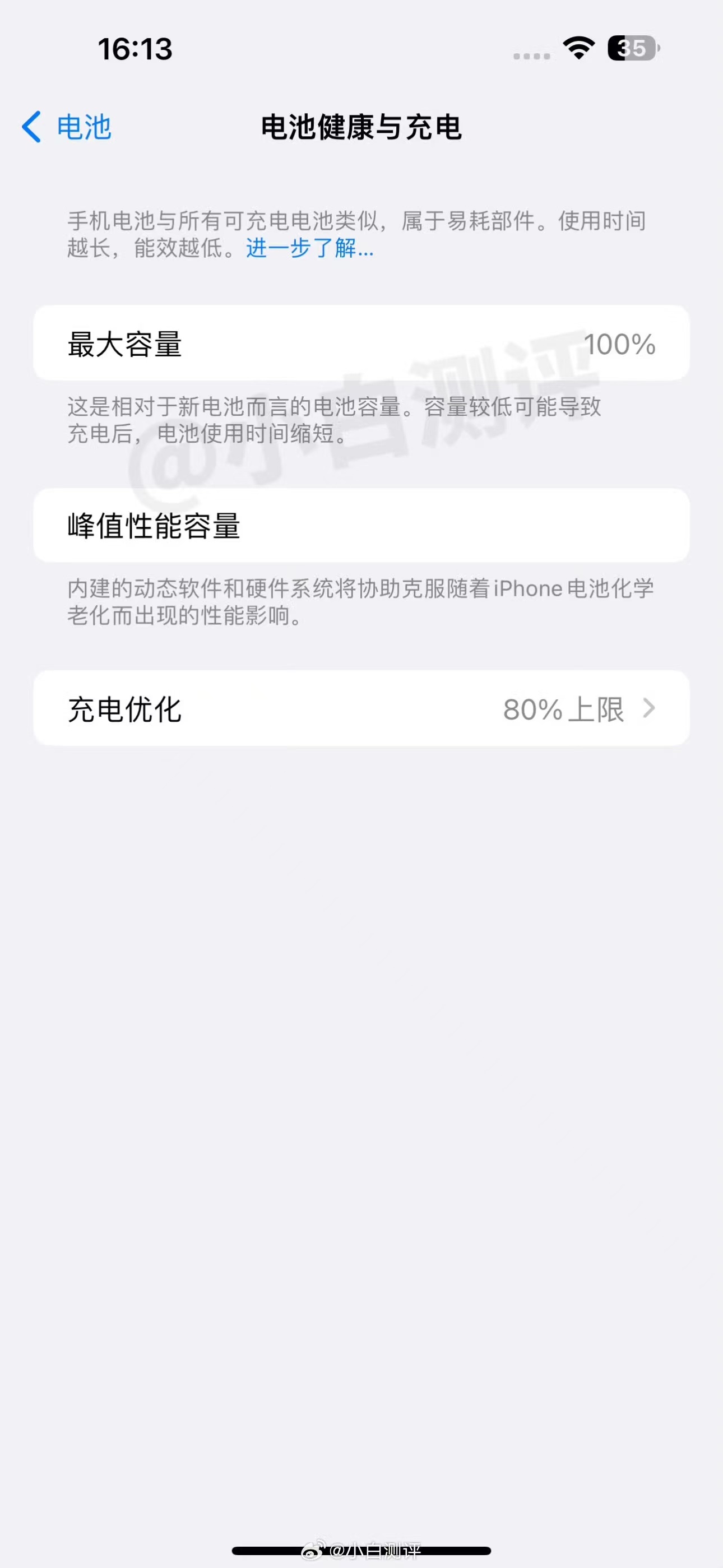 据了解,装有iOS 13及更高版本的iPhone支持“优化电池充电”,会学习用户日常充电习惯,在某些情况下,iPhone将暂缓充电至80%以上。