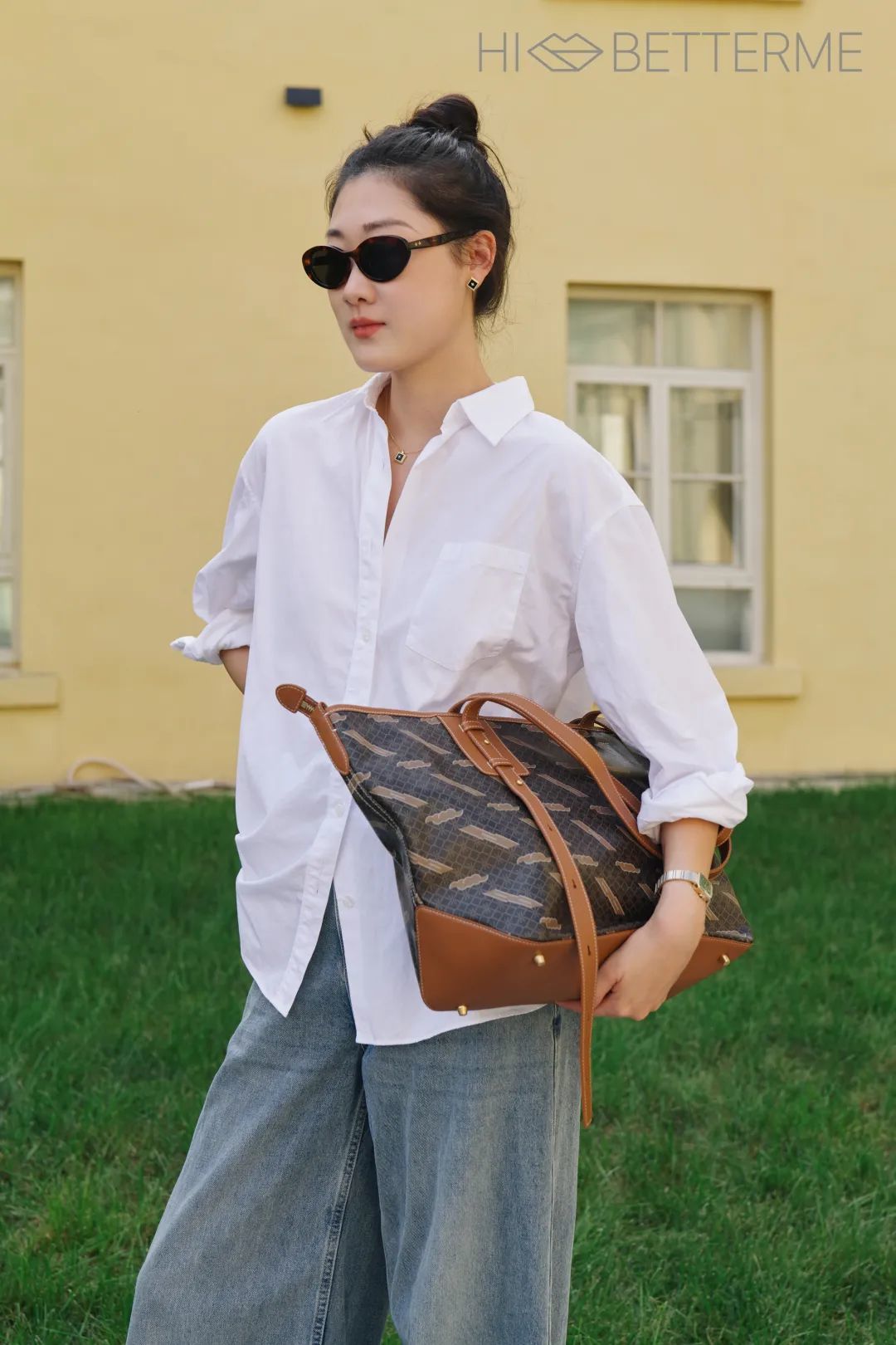 配上能装下整个世界的经典托特包型,很有见过天地之大,依然故我的洒脱劲儿。