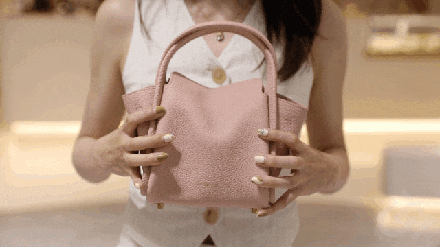 摔纹牛皮质感超好,软糯 Q 弹,和包身软萌的造型很搭,没事了还能捏一捏超解压哈哈~