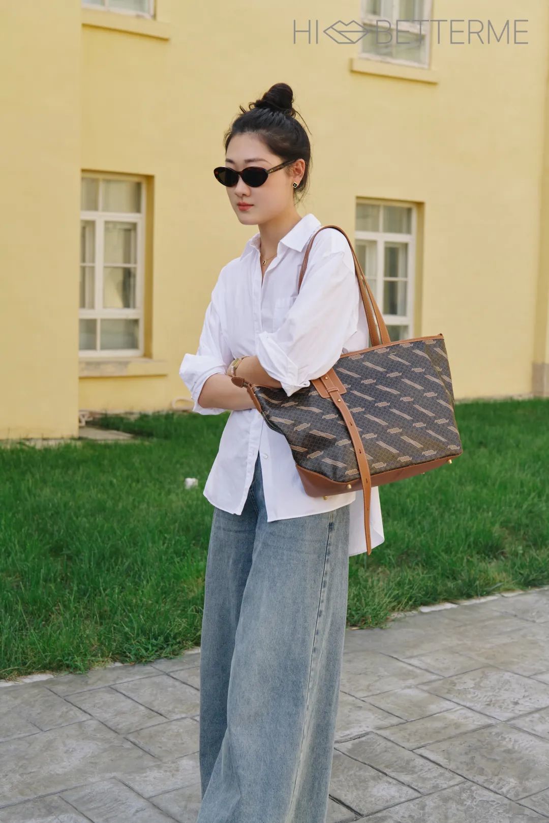 相比于帆布包和硬挺托特来说,它更柔软,适用的场合就更多。