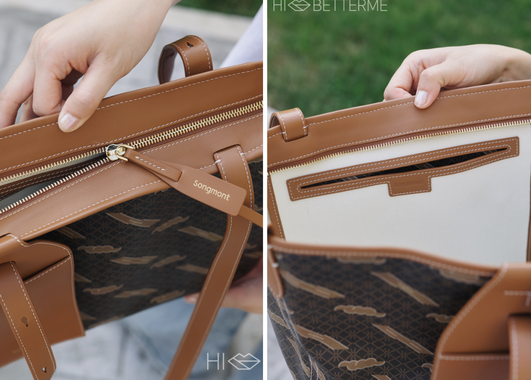 开口做了磁吸扣,有一定的安全性,内里还做了分隔内袋方便分类,Songmont 做东西您放心!