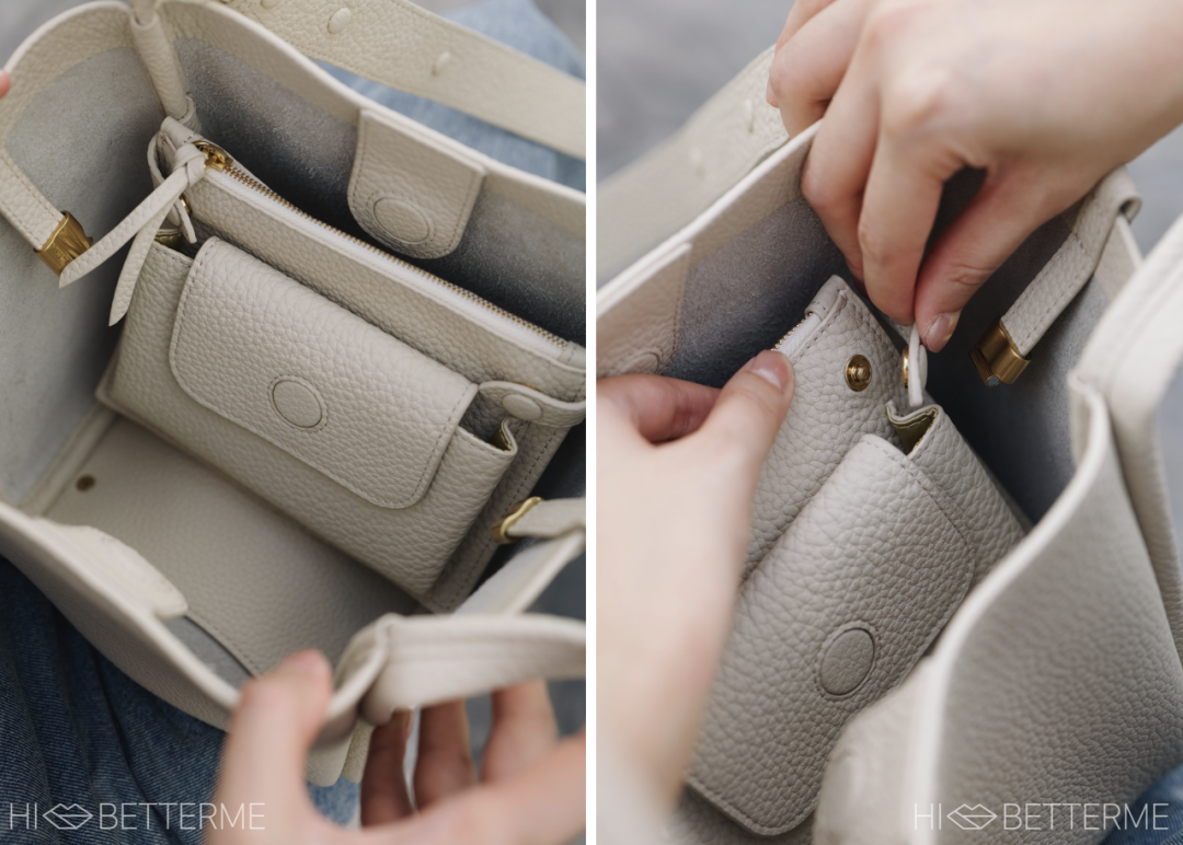 相比于走两步就要担心散摊子的广口托特,这只做了拉链设计,大小东西都不怕丢。
