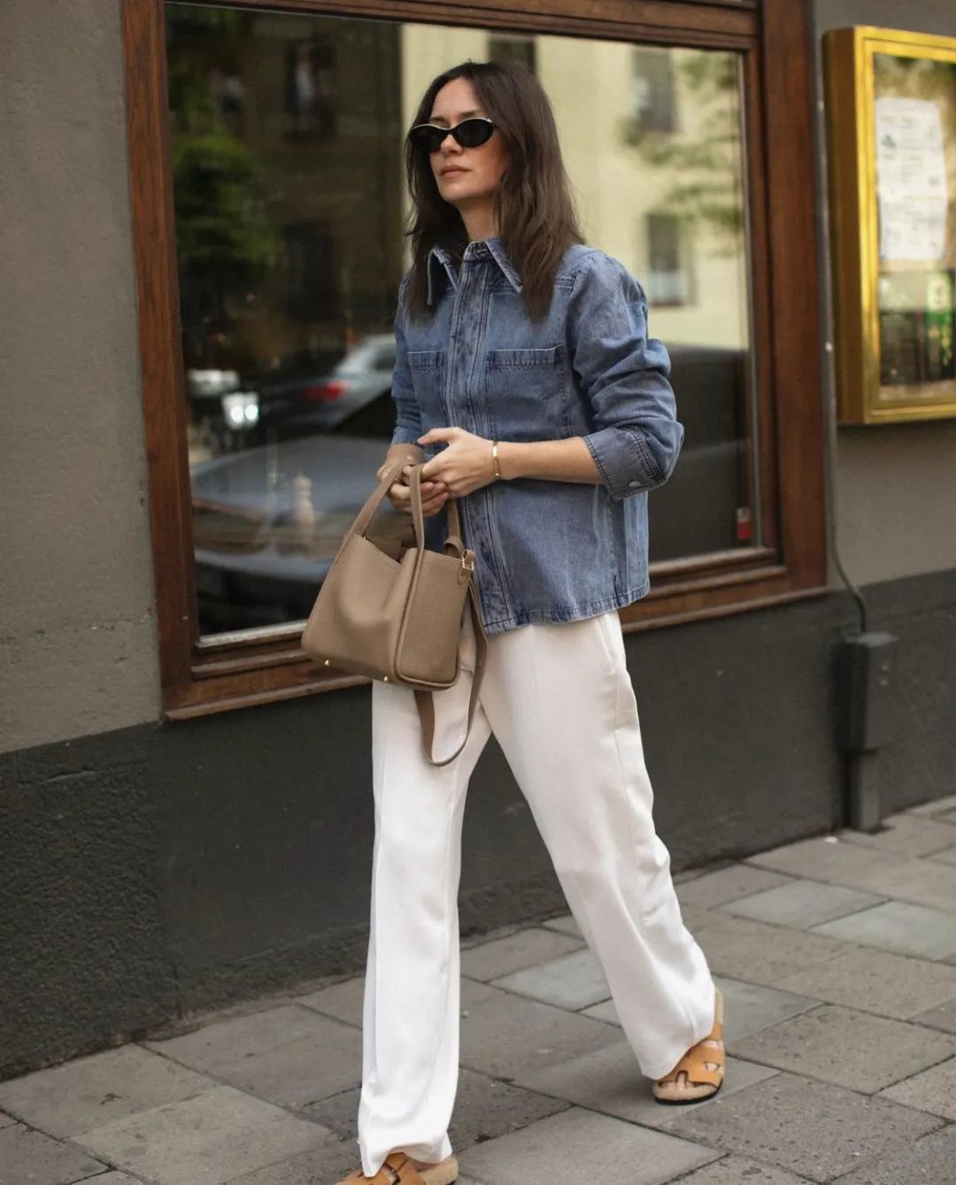 简简单单穿个衬衫+牛仔裤就足够有气质啦,上班啊商务场合啊带娃出门啊都能美美 cover 住👌🏻