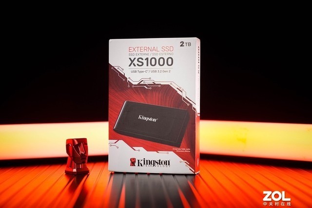 XS1000采用纸盒包装,封面设计风格与金士顿旗下的内存和固态硬盘相同,上端的白色部分标注了产品型号,右上角的小标签标注了容量,中间红色部分衬托产品定妆照,下端的白色部分是Kingston品牌logo。