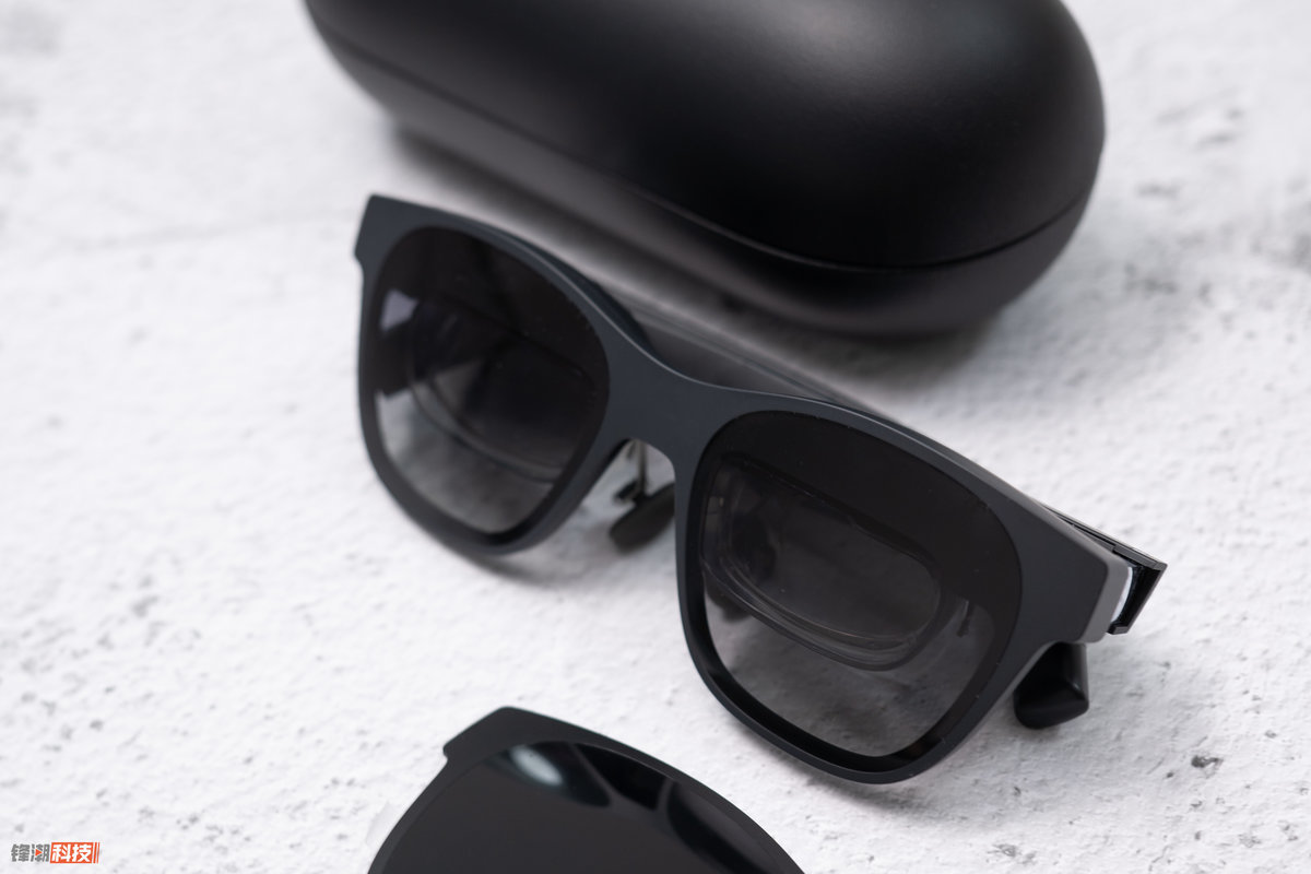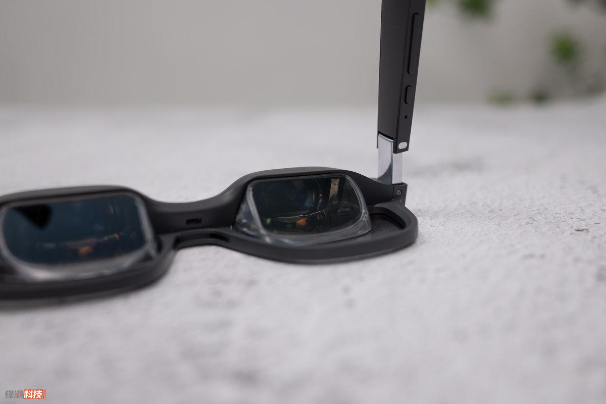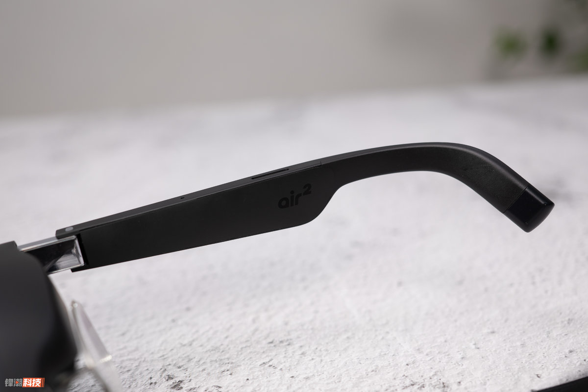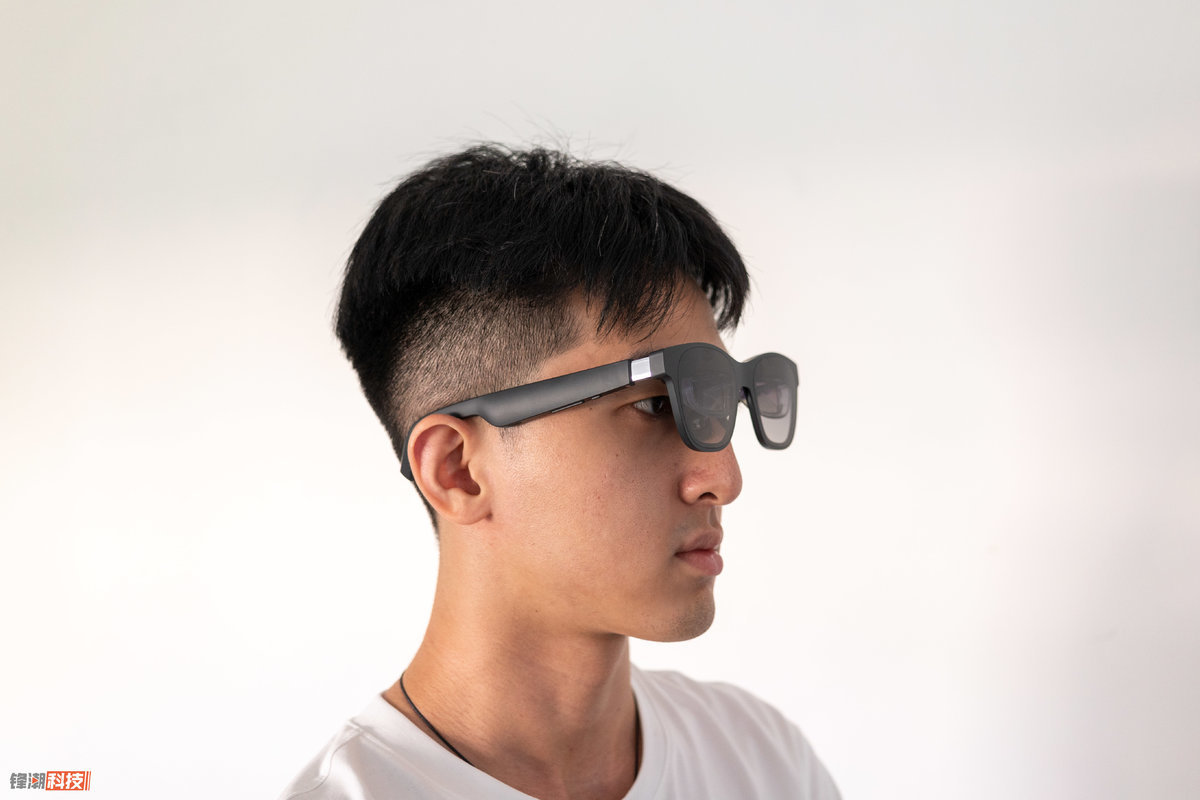 升级到第二代之后,XREAL Air 2 基本的产品大体结构思路并没有变化,依旧是一个完整的眼镜+屏幕+反射镜的结构,但相对应的是,它实现了约 72g 重量、仅 19mm 厚度的机身,同时镜腿还换上了更加柔韧的材质,更能适应不同的头型。