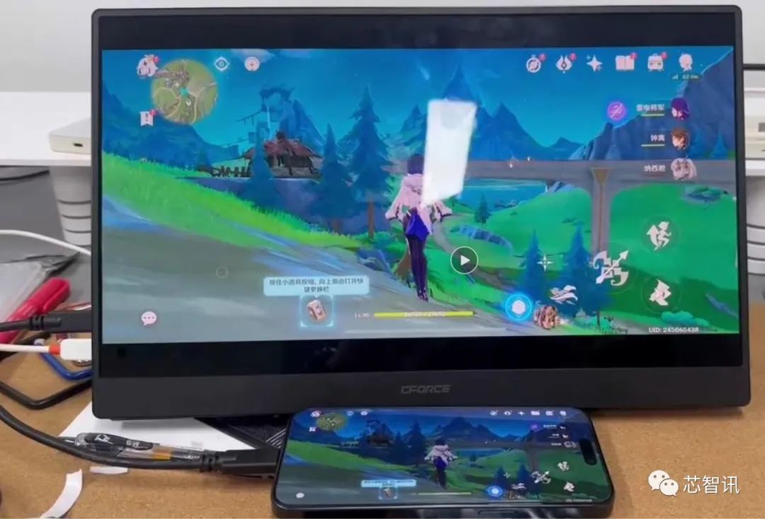 图2是内置了LDR6282/ LDR6020 PD芯片的CFORCE 4K OLED便携显示器与iPhone 15 PRO的兼容性测试。实测可以同时实现视频扩展输出和PD快充。生产USB-C Docking的朋友们,可以加大产能赶货了。iPhone 15 pro可以通过USB-C接口,进行4k高清视频输出。苹果在游戏方面野心昭然若揭。