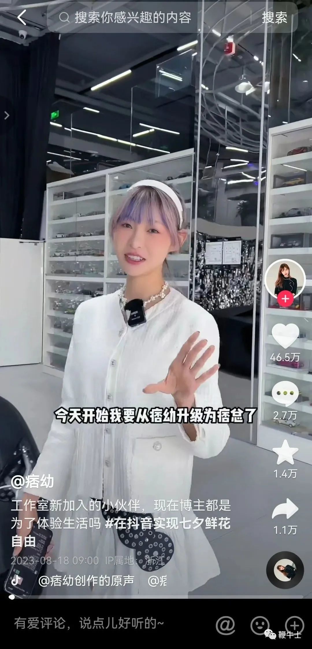 2022年7月,痞幼发视频称:一年啦,带同事们一起参观新办公区。