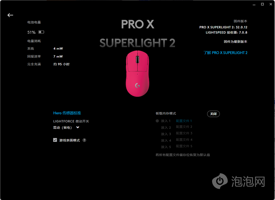 在G HUB中,还可以查看鼠标精准的电量情况,包括电量消耗情况以及剩余电量情况,对鼠标的情况了如指掌。