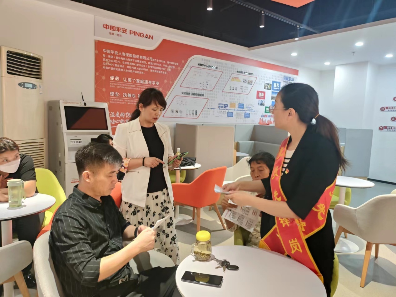随后,党员干部对临柜客户开展金融知识宣讲,倡导消费者“讲诚信、守底线”,培养良好的消费习惯和健康文明的网络行为习惯,引导消费者警惕非法“代理退保”陷阱,理性合法维护自身权益。