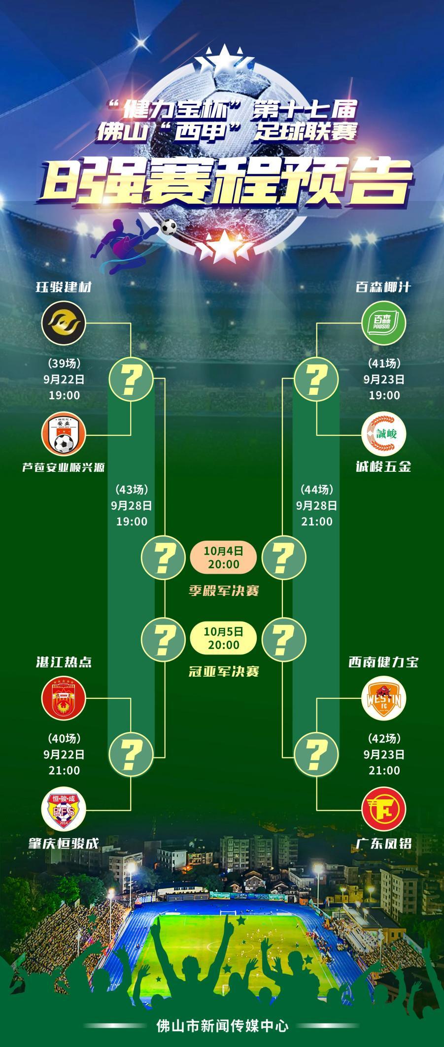 “健力宝杯”第十七届佛山“西甲”足球联赛8强淘汰赛赛程预告