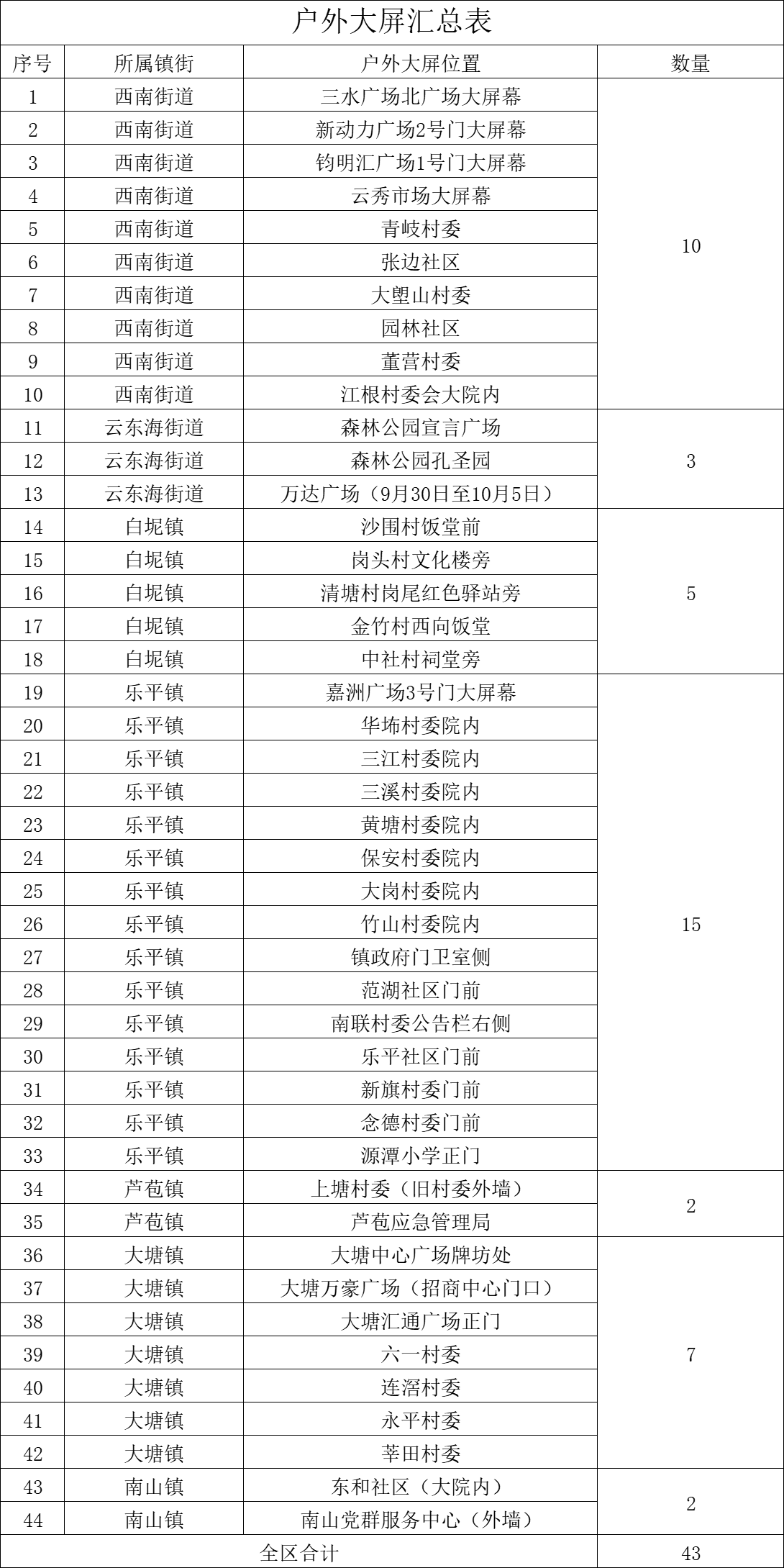 佛山三水万达广场:广东省佛山市三水区云东海街道南丰大道13号(此点在9月30日-10月5日期间将转播佛山“西甲”赛事)