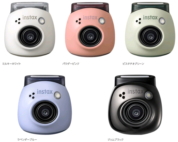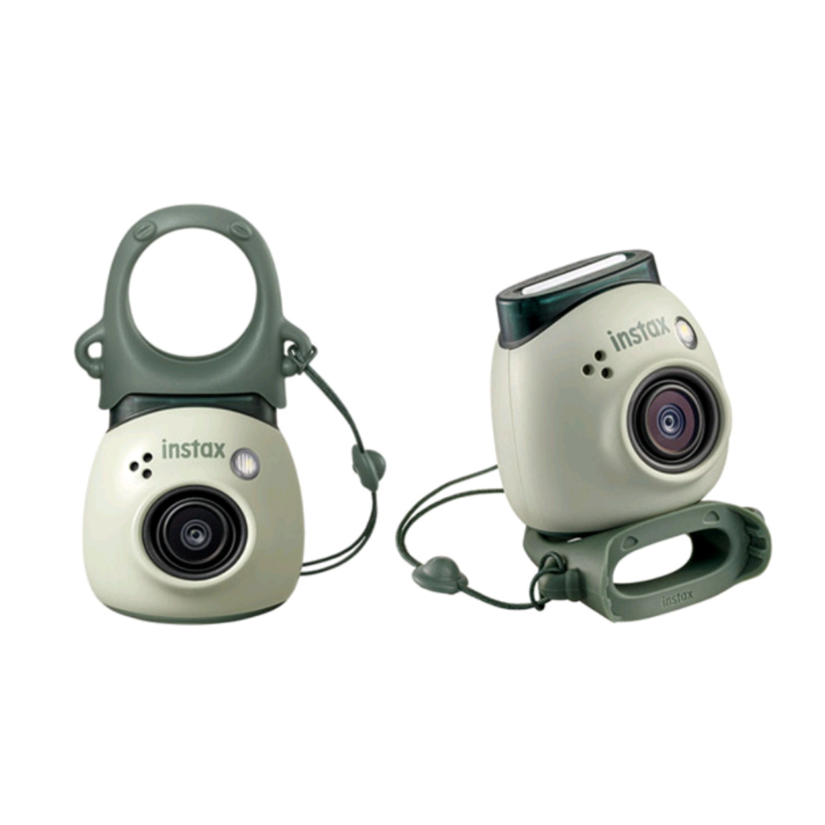 这款 Instax Pal 数码相机套装拥有白色、粉红色、绿色、蓝紫色和黑色五种配色,机身本体仅有掌心大小,整体的设计风格相当圆润小巧。