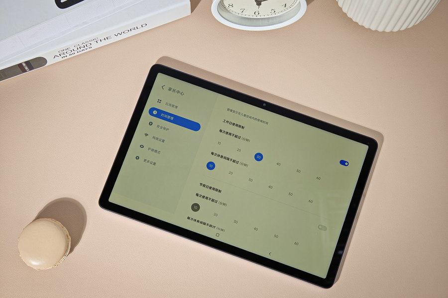 进入“儿童空间”后Redmi Pad SE直接变身成一款界面更贴近儿童、功能更适合儿童的学习平板,而且默认开启护眼模式,并支持屏幕距离检测功能,更好的保护孩子的眼睛。