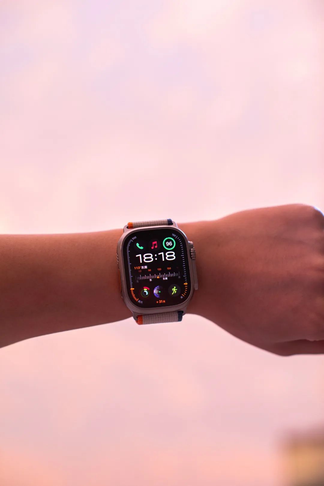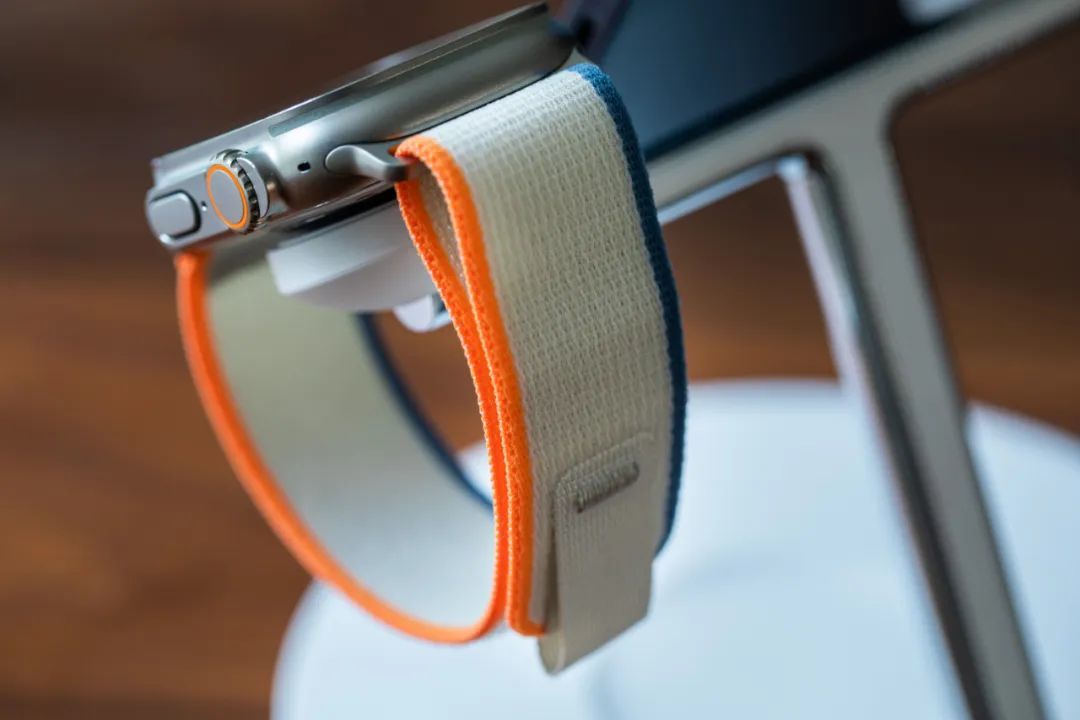 Apple Watch 的趣致灵魂就在于表带,Ultra 系列也不例外。今年,Ultra 2 也发布了三款功能性表带的新配色——野径回环式表带、海洋表带、高山回环式表带。我们取得了崭新配色的野径回环式表带,它是日常生活中 Ultra 系列的好选择——很轻薄的配装感受,但又能充满取戴的弹性,别忘了,今年还达成了碳中和——由回收成分制成。