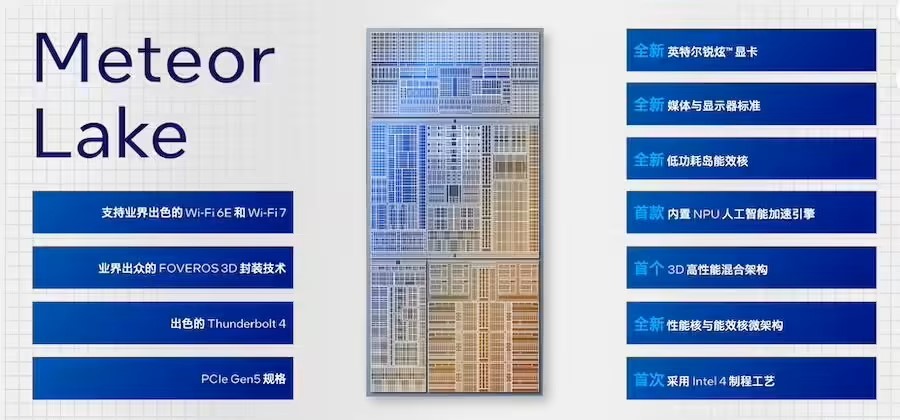 英特尔在 9 月 20 日的创新活动上公布了最新的 Meteor Lake 处理器,并详细介绍了 Meteor Lake 的一系列新特性,例如集成 NPU,拥有 AI 电源管理系统,续航提升 15%,其具备分离式模块架构,首次采用 Intel 4 工艺。