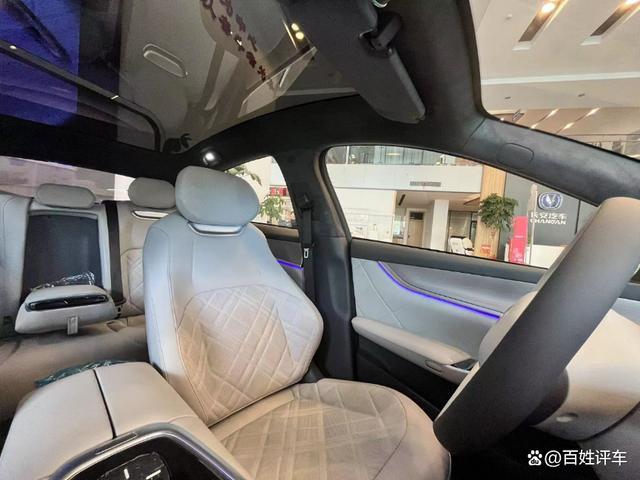 溜背式车顶造型多少会侵占后排乘客的头部空间,但在长安起源A07这种情况却不明显。这要得益于起源A07 2900mm超长轴距,和超大尺寸天幕。使长安起源A07前后排都有一个不错的空间表现。以我180的身高,可以舒舒服服坐在后排,腿部和头部空间都有一定富余。同时大尺寸天幕为整个座舱带来更好的通透感,完全还没有以往溜背轿车后排的压抑感。