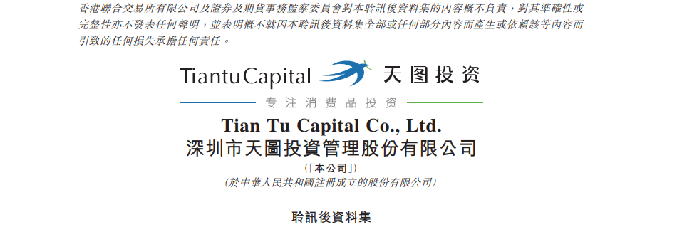 据悉,9月初,其有外媒报道,天图投资计划最快下周启动约1亿美元(约合人民币7.29亿)的香港首次公开招股(IPO)预路演。