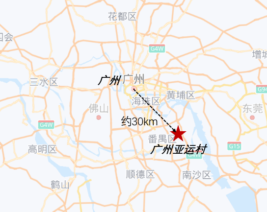 然而广州亚运村离广州市中心实在太远,位于番禺区莲花山南麓。