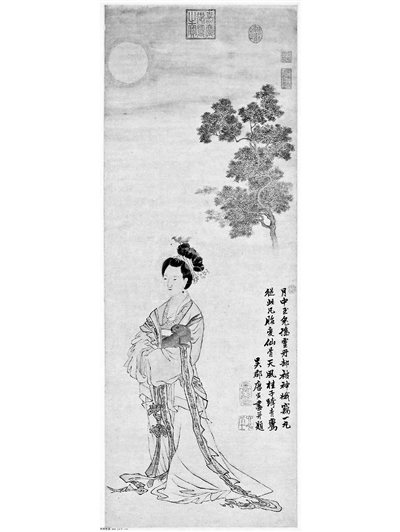 晋代思想家、文学家傅玄率先打破月宫冷寂,不仅将丑陋的蟾蜍踢出月宫,还安排可爱的小白兔常年陪伴嫦娥,他在《拟天问》中模仿屈原自问自答:“月中何有?白兔捣药,兴福降祉。”可以说,月神嫦娥的颜值在魏晋时期就受到不少文人的追捧,北魏文学家温子升《常山公主碑》曰:“公主禀灵宸极……直置清高,类姮娥之依桂树。”可见,嫦娥在当时人们心目中已是美的代名词。南朝宋文学家、辞赋家谢庄《月赋》云:“引玄兔于帝台,集素娥于后庭……情于轸其何托?诉皓月而长歌。歌曰:美人迈兮音尘阙,隔千里兮共明月。”嫦娥已与月融为一体,月亮之美、之冷也成为嫦娥的美和冰清玉洁。