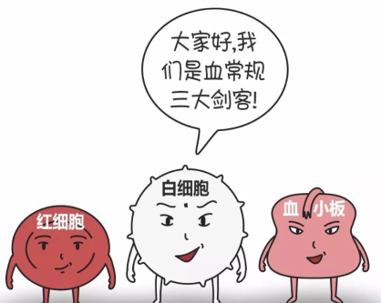 看完箭头后,我们看箭头对应的项目。一般来说,一张血常规报告单主要看三大指标:白细胞、红细胞和血红蛋白、血小板。