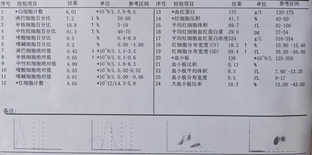 一张血常规报告单有20多个项目,其实咱大可不必琢磨每一个项目,首先看结果后面的箭头!