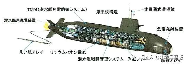 “大鲸”级柴电攻击潜艇配备了一种常规光学、非穿透型潜望镜,其实就是英国泰雷兹公司研制、经三菱电机许可生产的CMO10型光电桅杆改进版,集成了电子侦察、海自信息共享传输系统、卫星通讯天线、低频通讯天线等,还配备了一个ZPS-6F水面/低空空中搜索雷达,以探测敌方的反潜战平台和海上巡逻艇。