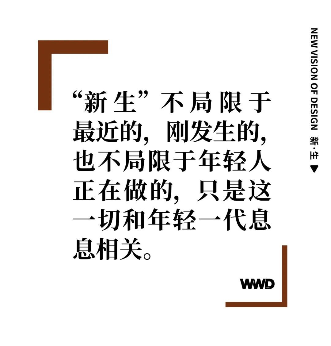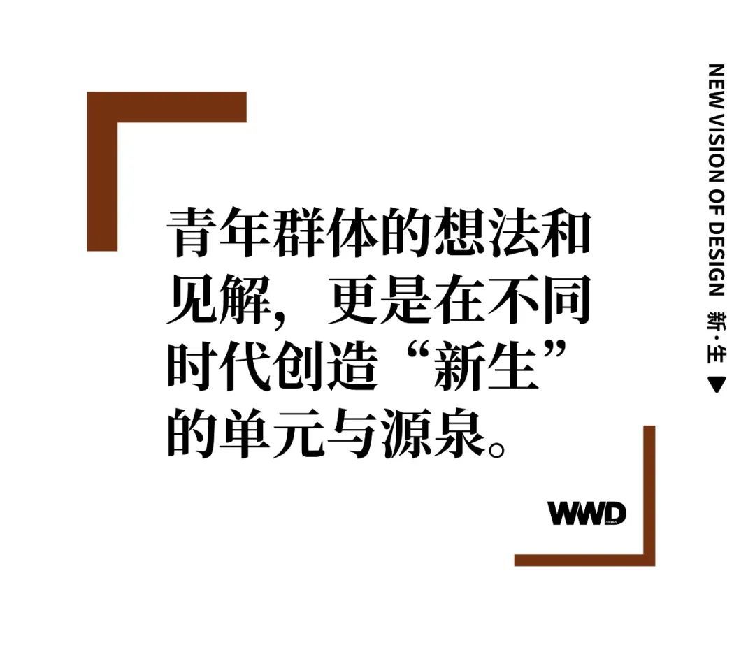 “新生”往往和年轻一代联系在一起,青年群体是“传承”与“未来”的执行者。直林说:“传统就像固有板块,受到挤压分裂,新生就像从缝隙生长出的那部分。”每一个“新生”的诞生,都经历着严峻的考验,而这些历练也成就了未来的“经典”。而未来,在每一个拥有“新生”之心的人的步伐中。WWD